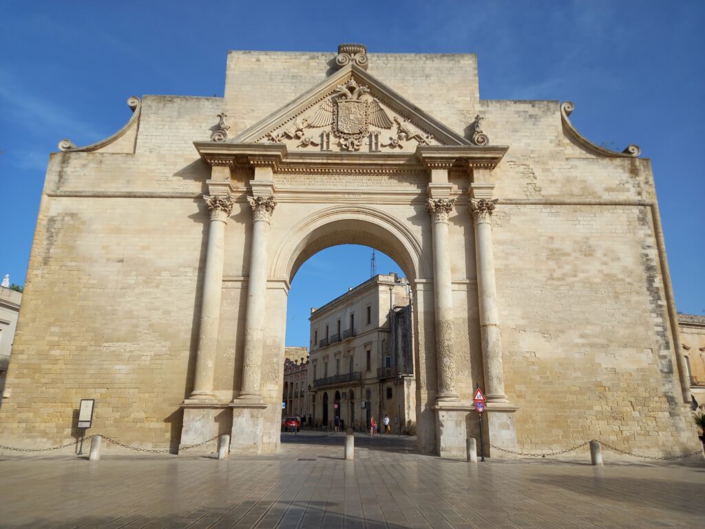 In the heart of Salento lies Lecce, a small city that will win you over with its extraordinary Baroque architecture and the warm glow of pietra leccese — the golden local stone used in the construction of virtually every building in the historic centre. Step through one of the city’s three ancient gates to begin your exploration: Porta Napoli, which once marked the road to the capital of the Kingdom; Porta Rudiae, a fine example of Lecce Baroque in its own right; or Porta San Biagio, with its distinctive pinkish hue. Once inside, let yourself wander through streets lined with noble palaces, flower-draped balconies and hidden courtyards tucked between churches and narrow alleyways. Look up often — the city rewards those who do! From the Basilica di Santa Croce, the most celebrated symbol of Lecce’s distinctive style, to the sumptuous cathedral and bell tower framing Piazza del Duomo, the Baroque here is unlike anywhere else. Before you leave, make sure to stop at Piazza Sant’Oronzo, where a partially excavated Roman amphitheatre brings two thousand years of history right to the surface.