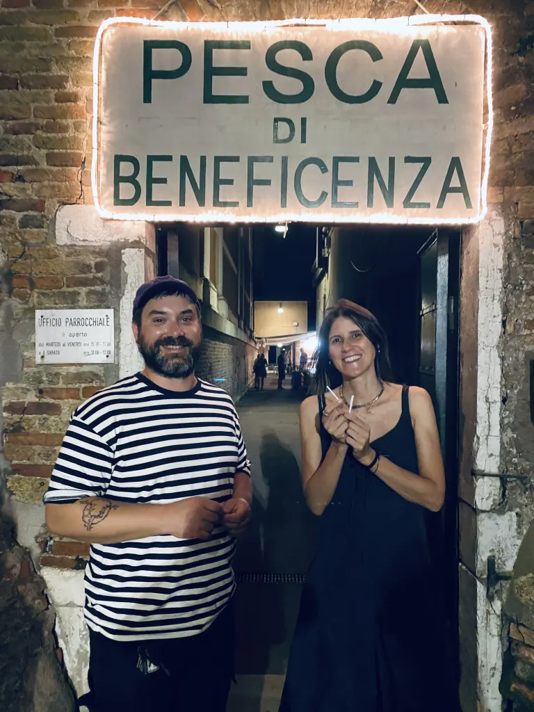 Suitably called ‘the famous night’ by the Venetians, the Redentore Festival is the most important celebration in Venice. It may even surpass the Carnival and the Historical Regatta. The festival is characterized by bright lights, lively stalls, kiosks and long tables along the ‘fondamenta’ (think of them as sidewalks next to the canal) where everyone comes together to have dinner. The celebration is steeped in tradition and is accompanied by various religious services. One of the highlights is the ‘Pesca di beneficenza’. In exchange for a small fee, each participant gets to ‘fish’ a ticket and receives a prize corresponding to the number on the ticket. These prizes are often gifted by the community, and the charity event is organized by the parish of the Redentore (a 16th-century Roman Catholic church situated on the island of Giudecca).